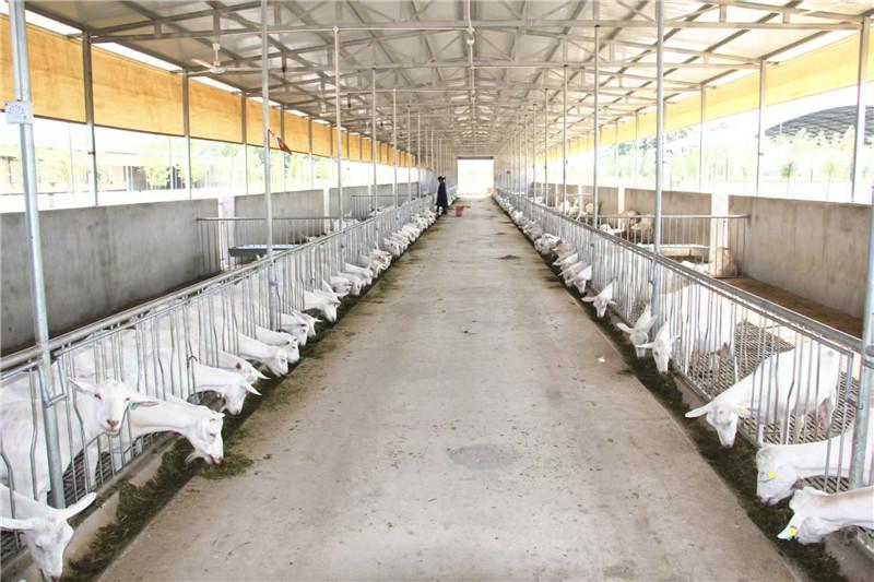 合作社内,服务中心、饲料中心、养殖中心渐次分布,2000多只奶山羊正在现代化羊舍悠闲地享受“美食”。