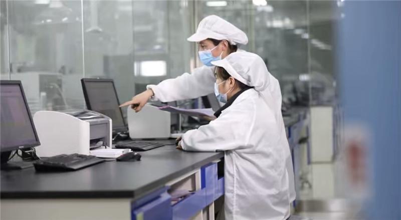 1月6日,在富平县陕西红星美羚乳业股份有限公司化验室内,两名技术人员正相互协作开展产品质量检验工作。
