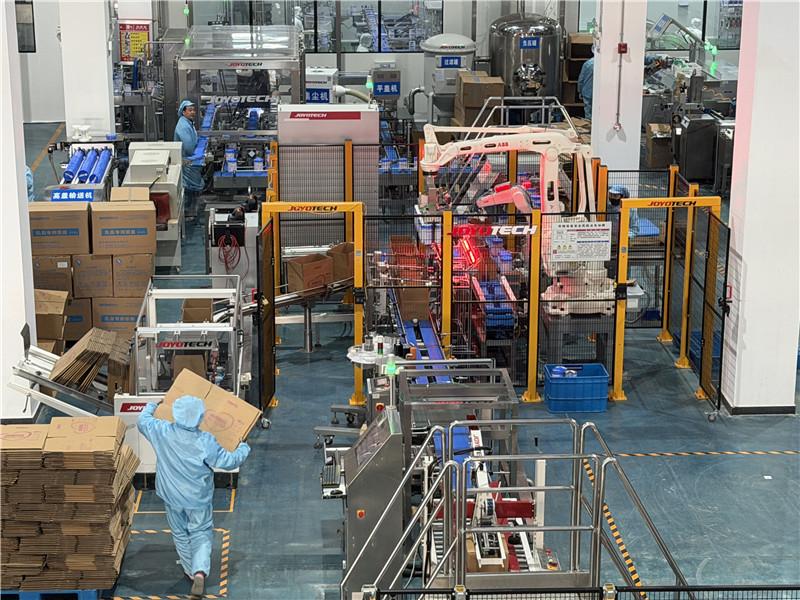 1月6日,在富平县陕西红星美羚乳业股份有限公司智能化生产车间里,智能化机械正与工人们协同作业。